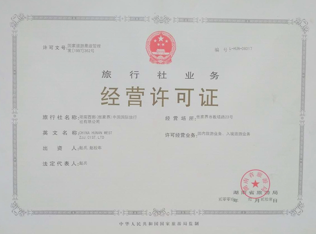湖南西部(張家界)中國(guó)國(guó)際旅行社有限公司