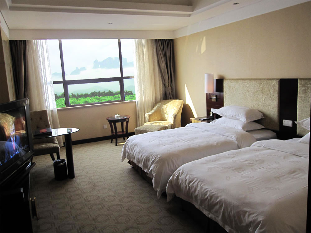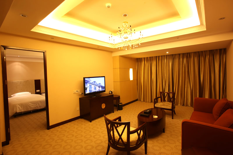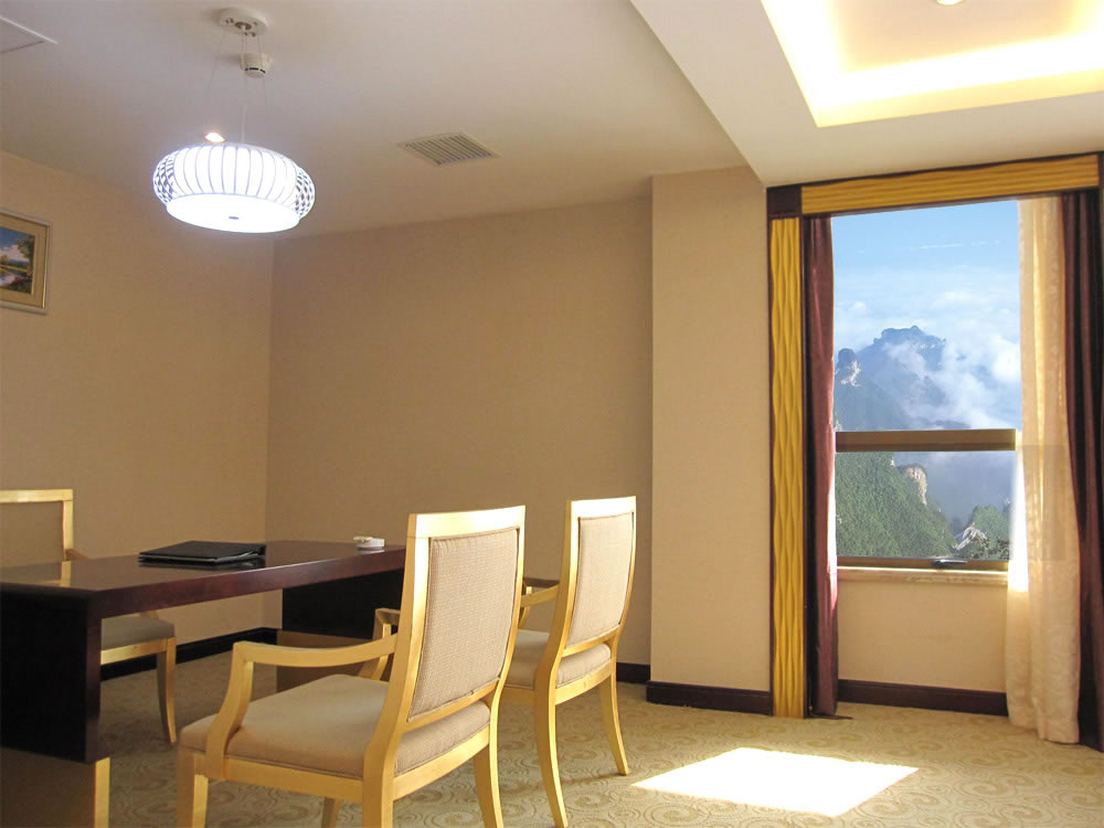 【豪華客房】(3—16 樓)):擁有各類豪華客房共380間/套,其中頂樓為皇室套房,有空中花園,可遠觀天門山景區(qū)。