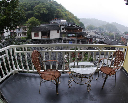 如果你選擇半山別院,在客房的觀(guān)景陽(yáng)臺(tái)上,你可以俯瞰大半個(gè)古城,湘西晚清古建筑群,駐立江邊的萬(wàn)民塔。