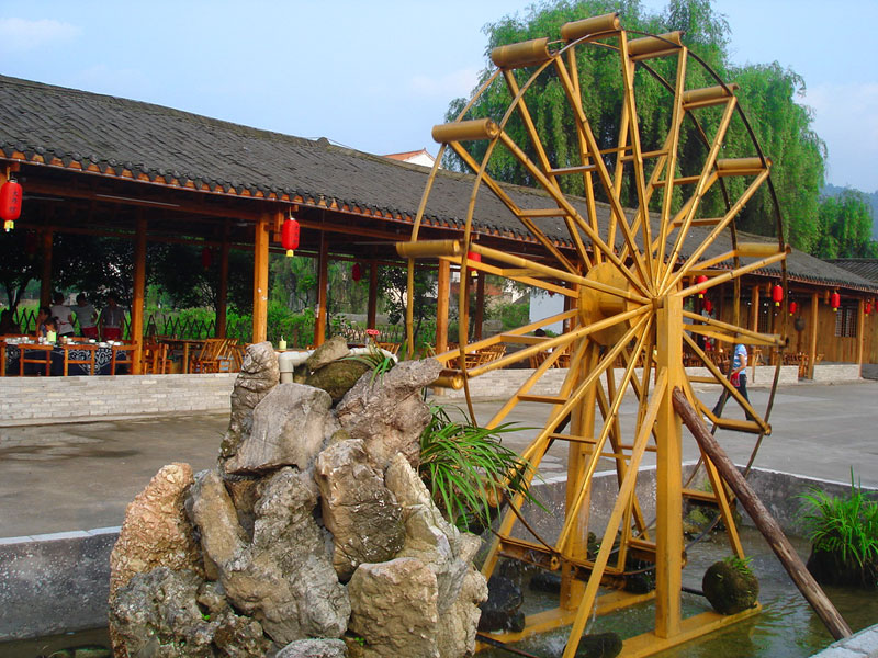 張家界武陵源大作坊美食城是一家集垂釣休閑,特色餐飲,夜市為一體的大型風(fēng)味美食城!位于風(fēng)景如畫的武陵源風(fēng)景區(qū)區(qū)政府所在地,占地3000多平方米,可同時(shí)容納400多人就餐。這里也是景區(qū)內(nèi)匯集土家美食,苗家美食的第一坊!美食城按純木四合院建造,內(nèi)設(shè)酒作坊,豆腐作坊,臘味作坊,糍粑作坊,有垂釣區(qū),燒烤區(qū),菜品自助區(qū),客人廚藝展示區(qū),農(nóng)產(chǎn)品展銷區(qū)等。酒作坊內(nèi)聘請(qǐng)了民間煮酒大師現(xiàn)場煮酒,你有機(jī)會(huì)可以現(xiàn)場吃到熱乎乎的頭鍋酒,酒坊內(nèi)有純米酒,包谷燒,高梁酒,有用野果泡制的各種果酒---燈籠酒,楊梅酒,彌猴桃酒等,更有特色的是把高梁酒放在正在生長的楠竹內(nèi),用竹內(nèi)竹膜的香味把酒增香,十二天就把竹子砍下再放養(yǎng)三天就好了,客人要吃現(xiàn)場鋸竹筒酒吃!豆腐坊也是聘請(qǐng)民間老農(nóng)現(xiàn)場用自制的石磨做豆腐,在這里你可以吃到真正有豆香味的原汁原味的石磨豆腐,和渣,菜豆腐,豆腐腦等豆制品!臘味作坊里有冬天用各種香料熏制的正宗湘西藏臘肉,臘豬頭肉,臘香腸,臘豬腳,各種臘制品臘野味等。糍粑坊每天在晚上人多用餐高峰時(shí)現(xiàn)場打滋粑,客人也可以自己參與打糍粑這個(gè)快樂的過程,想受過年時(shí)才有的熱鬧情景!在垂釣區(qū)里我們放養(yǎng)有很多野生魚類,有時(shí)間了你可以來這里休閑垂釣,得到的魚我們就會(huì)給你現(xiàn)場加工,有清沌的,紅燒的,青椒燜的,酸湯的,都很好吃哦。燒烤區(qū)里,我們高薪聘請(qǐng)了燒烤大師為你現(xiàn)場制做,你也可以自己動(dòng)手,有烤羊排羊腿,各種串烤,烤全魚,烤全兔等,還有各種鐵板烤可以自己炒著吃!菜品自己選區(qū)里有各種山野菜,壇子菜,干菜,臘味等,有各種鮮活的魚類,河蛘,水魚,田螺,龍蝦等,有各種農(nóng)家的土雞土鴨等,有各種鮮活的野味等你來享受美味呢!客人廚藝展示區(qū)里老板特設(shè)制地幾口大鍋, 很有特色的是, 你可以自己親自下廚, 酸甜苦辣任您自由調(diào)配 。 煮好了, 大家就圍著這“灶臺(tái)”合一的飯桌享受張家界的美食了。(張家界的三下鍋是很有特色的,是邊煮邊吃的, 只是這“三下鍋”是“大型三下鍋”而已。到張家界旅游,吃張家界的“三下鍋”是一種獨(dú)有的旅游體驗(yàn),到大作坊吃“大型三下鍋”,則更將會(huì)為你的旅程增添一份難得的回味。農(nóng)產(chǎn)品展銷區(qū)里展示著當(dāng)?shù)鼗蛳嫖鞯貐^(qū)最暢銷的農(nóng)產(chǎn)品食品:正宗湘西鄉(xiāng)里臘肉,香腸,各種臘制品,洗車河霉豆腐,靈潔牌剁椒辣醬系列,菌油,正宗茶籽油,苗家酸湯,鄉(xiāng)里正宗葛粉,大壇湘西五糧液,竹簡敲敲酒,張家界茅巖霉茶,野生蜂蜜,高山葛粉,張家界第一山珍巖耳,葛根片等等!