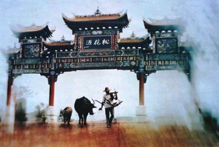 | 一千五百多年前,東晉大詩人陶淵明寫了一篇千古名文《桃花源記》(為其詩《桃花源》之序)。說是武陵地方的一個漁夫,沿著一條小溪航行,忽然看到山中有一個缺口,就丟下船從這缺口里走進去,發(fā)現(xiàn)了另外一個世界。在這個世界里,土地平曠,房屋整齊,人民生活古樸而富裕,男女老少熙熙為樂,看到漁人大吃一驚,紛紛請他回家吃飯飲酒,自稱祖先是為了逃避秦時的戰(zhàn)亂,逃進桃花源來生活。這些人不知道秦以后有過漢朝,漢朝以后又有晉朝。漁人在這桃花源里住了好幾天,想家了,就與他們告別。出了桃花源,以后再去尋找,就找不到了。
