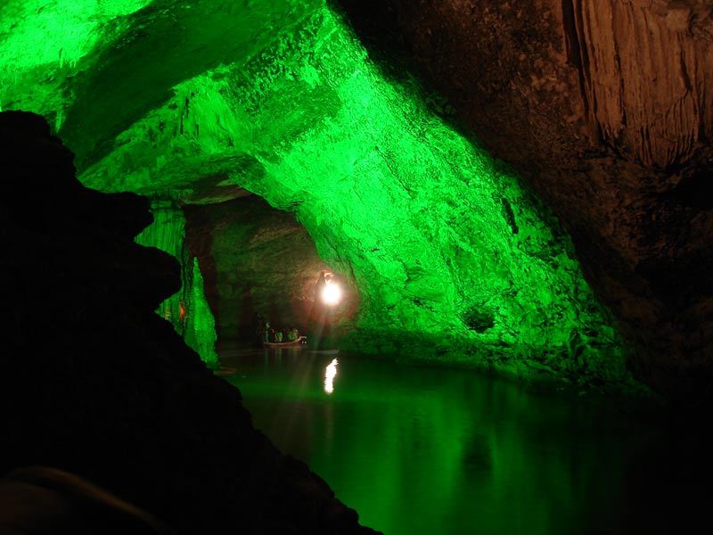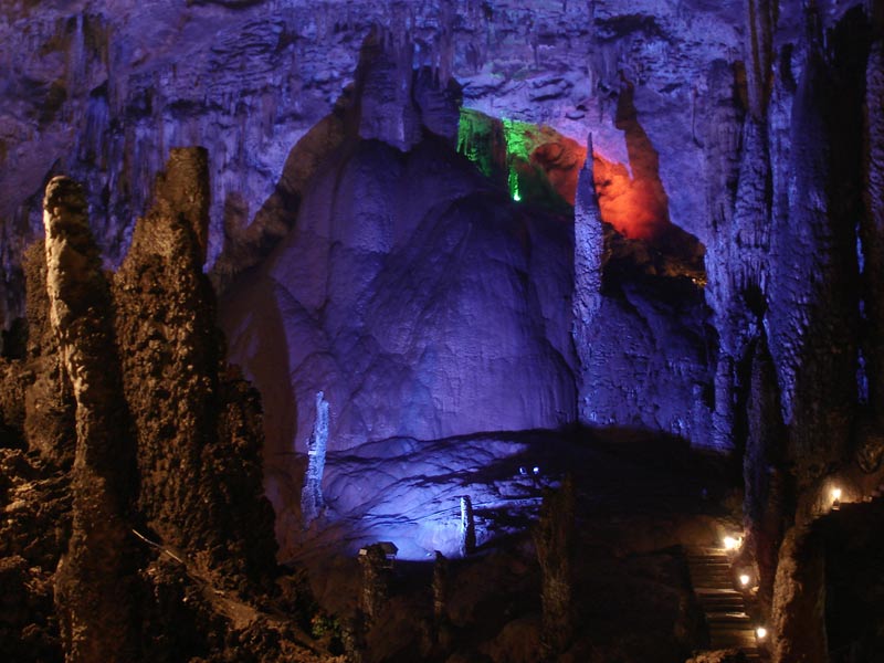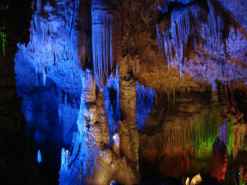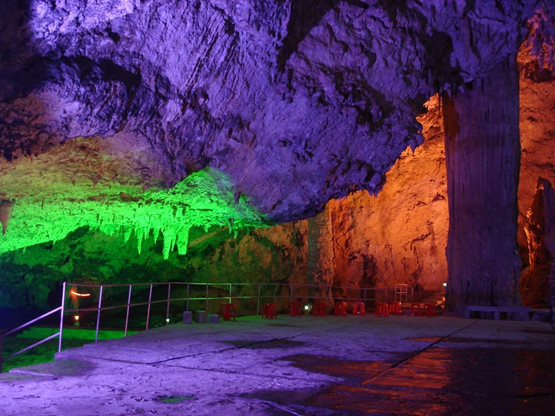 第四絕:九天洞幽 進(jìn)入九天洞如同到了一個(gè)寧靜的世界,在洞內(nèi)讓人有掙脫樊籬,還我自然之感。我們?cè)诙磧?nèi)看到的各式各樣的自然造型,它們是那樣古樸,那樣自然,那樣錯(cuò)落有致,毫無人工雕鑿與粉飾的痕跡。我們?cè)诙磧?nèi)聽到的是潺潺的流水聲與飛燕的撲翅聲,當(dāng)然還有蝙蝠、巨鼠的瞿瞿聲。除此外,洞內(nèi)還有許多南來北往的通幽曲徑:有的去舞廳,有的進(jìn)城門,有的下暗河,有的上天窗。 |