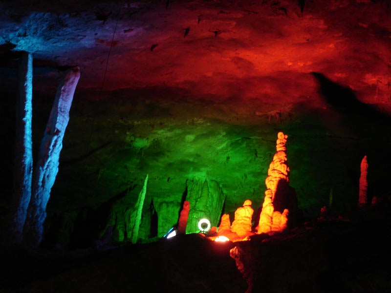 第三絕:九天洞美 九天洞美,美在自然,美在古樸,美在地下溶洞各種自然造型,美在各種色彩,美在世界珍稀。簡(jiǎn)言之,九天洞勝狀,主要是洞穴美與色彩美,一句話,是自然美。當(dāng)探洞人王海然第一個(gè)在九天洞發(fā)現(xiàn)那些五光十色,造型各異,神奇乖巧的溶洞自然物時(shí),他感到興奮,感到驚訝,感到鼓舞,感到自豪并且被這些美麗的自然物陶醉了,以至于廢寢忘食。當(dāng)你置身九天洞,你可以仔細(xì)欣賞那洞底暗河的流水,那紅色的河床、它們是那樣嘩嘩的流,水聲又是那樣的美。那淡紅、朱紅和鮮紅的河床、河水,有是那樣鋪彩爍金,色彩斑斕,五光十色,真叫人眼花繚亂,目不暇接,越看越神,越看越迷,看的如癡如醉。