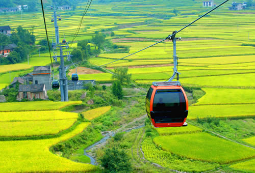 天門山索道途經(jīng)的美麗田園 天門山索道最大的亮點(diǎn)就是它的爬坡面支架的設(shè)計 ,這個支架共有壓索輪96個,托索輪16個,它綜合了現(xiàn)代物理學(xué)、現(xiàn)代工程學(xué)、現(xiàn)代制造業(yè)中最先進(jìn)的理論和成果,應(yīng)用了世界最先進(jìn)的索道技術(shù),從而使這段索道總給人一種蕩氣回腸、氣勢沖天的感覺。