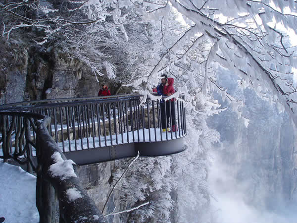 據(jù)施工人員介紹,此條棧道也是他們所修棧道中施工最難,最險(xiǎn)峻的一條。如果您還覺得不夠刺激的話,在棧道的完結(jié)處的兩個(gè)懸崖之間有一條長160米的懸索吊橋,同時(shí),在海拔最高點(diǎn)還有一個(gè)挑戰(zhàn)心里極限的玻璃站臺,在這里,如果你能挺直腰板伸開雙臂,那么,您就是真正的勇士了。