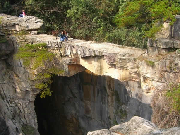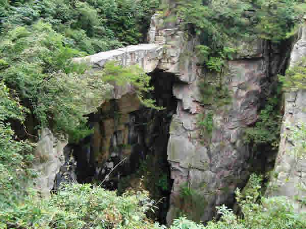 | 仙人橋,長26米,寬1.6米,厚1米,高67米,飛架在兩處懸崖絕壁之間,鬼斧神工,驚險(xiǎn)而奇特。