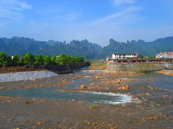 索溪峪的水 索溪峪的景觀,以山水為依托。不僅山奇、水秀,而且橋險、洞幽。有十里畫廊、西海峰林、百丈峽、寶峰湖、黃龍洞、一線天等游覽點(diǎn)300多個。