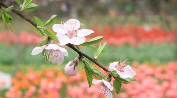園內的桃花開得正艷,郁金香和桃花在一起的地方更是美上加美,成為游客拍攝最多的地方。由于游客眾多,經(jīng)常有人踏入花田中拍照,這可忙壞了現(xiàn)成巡邏的工作人員,筆者在此呼吁大家愛花更護花,文明欣賞。